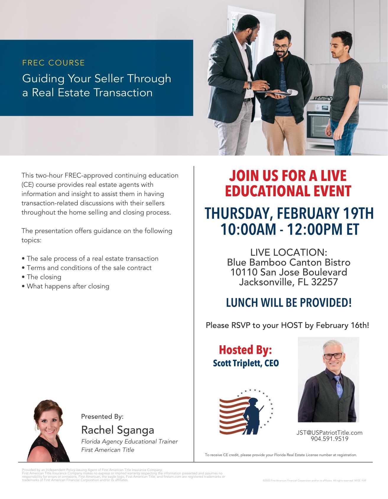 RSVP BELOW prior to February 16 – If you need to cancel your RSVP, please email jst@uspatriottitle.com so we can offer the spot to someone else. Thanks! This two-hour FREC-approved […]