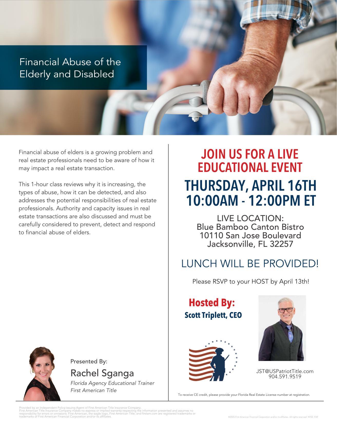 RSVP BELOW prior to March 16 – If you need to cancel your RSVP, please email jst@uspatriottitle.com so we can offer the spot to someone else. Thanks! This two-hour FREC-approved continuing […]